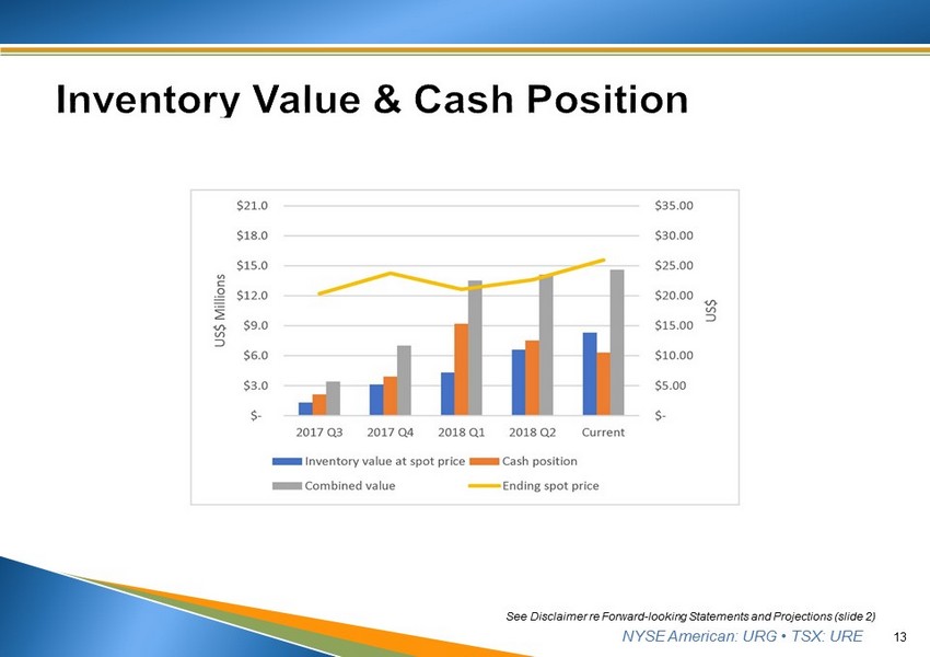 NYSE American: URG • TSX: URE 12 See Disclaimer re Forward - looking Statements and Projections (slide 2)
