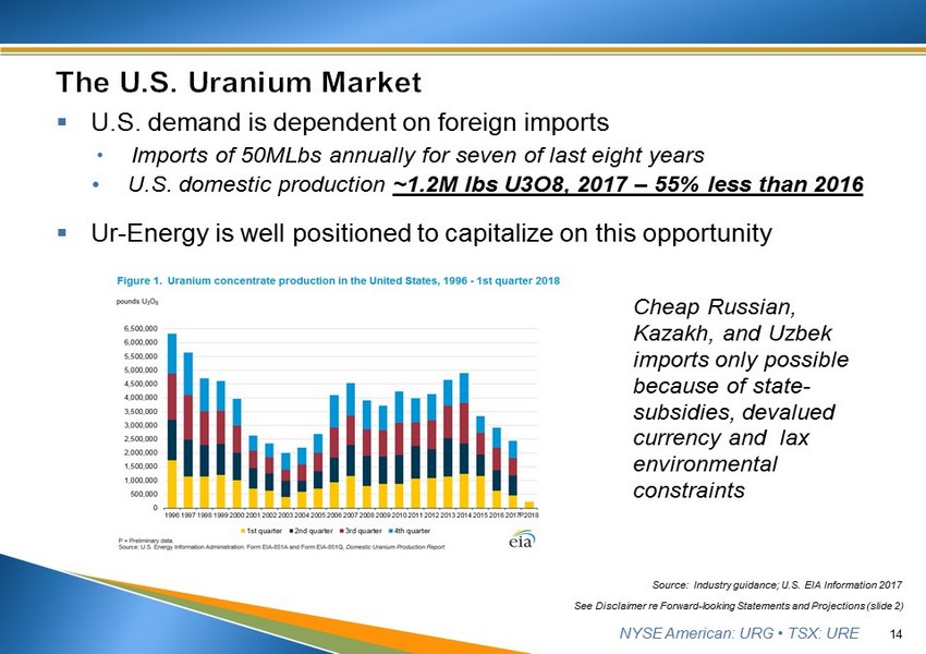 NYSE American: URG • TSX: URE 13 See Disclaimer re Forward - looking Statements and Projections (slide 2)