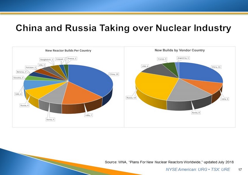 NYSE American: URG • TSX: URE 17 Source: WNA, “Plans For New Nuclear Reactors Worldwide,” updated July 2018