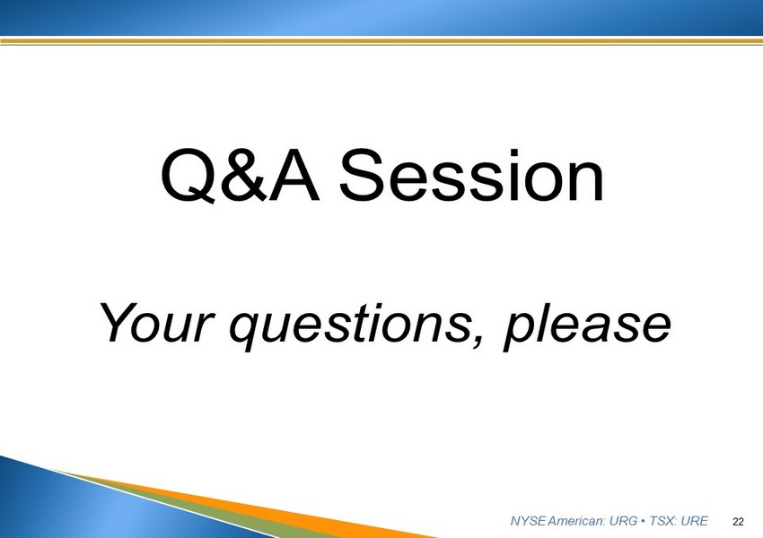 NYSE American: URG • TSX: URE Q&A Session Your questions, please 22